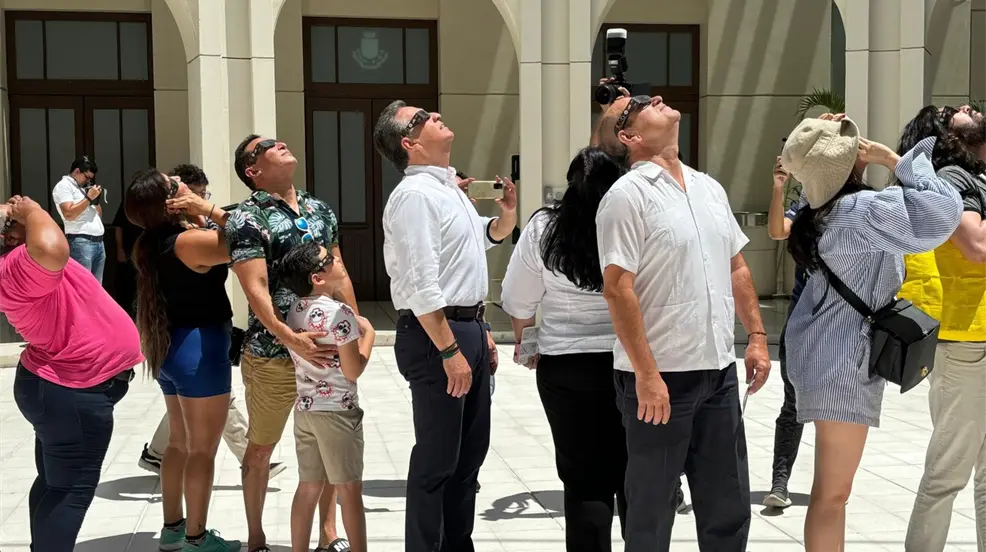 Desde muy temprano cientos de personas se dieron cita a las afueras del Centro Cultural Olimpo y del Gran Museo del Mundo Maya para disfrutar del eclipse solar parcial, el cual se pudo ver en un 53 por ciento en el estado.