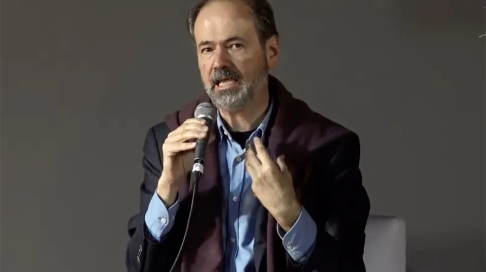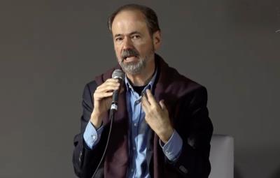 El escritor y periodista Juan Villoro presentó en el foro principal de la Feria Internacional del Libro del Zócalo su más reciente libro La figura del mundo
