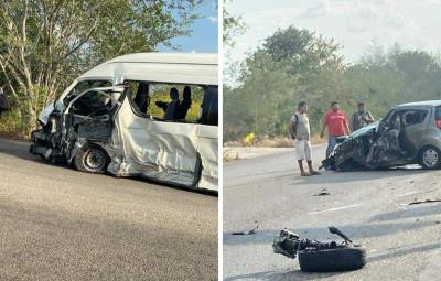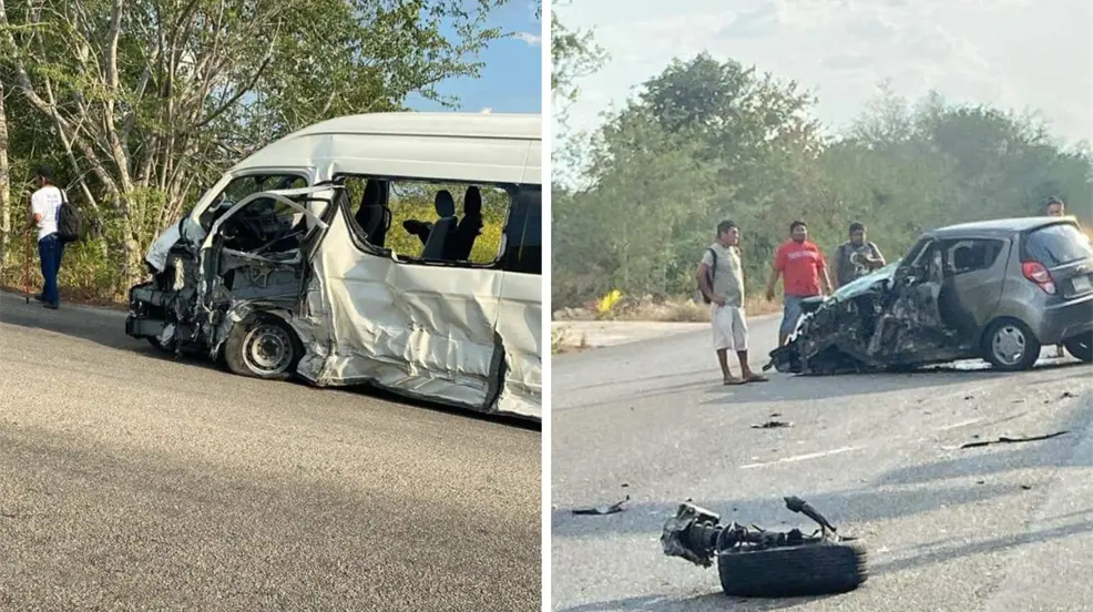 Accidente en Izamal: Auto invade carril y se impacta contra una Van de pasajeros