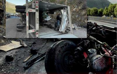 Desconociendo la peligrosidad del tramo, Omar intentó maniobrar hacia la derecha para impactar contra un talud, sin embargo, la velocidad a la que se desplazaba provocó que el tráiler volcara y se partiera en tres. La cabina se desprendió del chasis, mientras que el remolque quedó recostado sobre la carretera, bloqueando parte de los carriles.