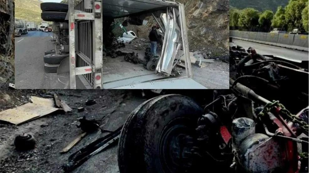 SALTILLO, Coahuila – Un fuerte accidente ocurrió la mañana del domingo 22 de septiembre en la carretera federal 57, a la altura del kilómetro 231, en el peligroso tramo de Los Chorros. El incidente se registró alrededor de las 06:00 horas, cuando Omar N., operador de un tractocamión que transportaba componentes de motor, perdió el control del vehículo tras sufrir una falla en los frenos.