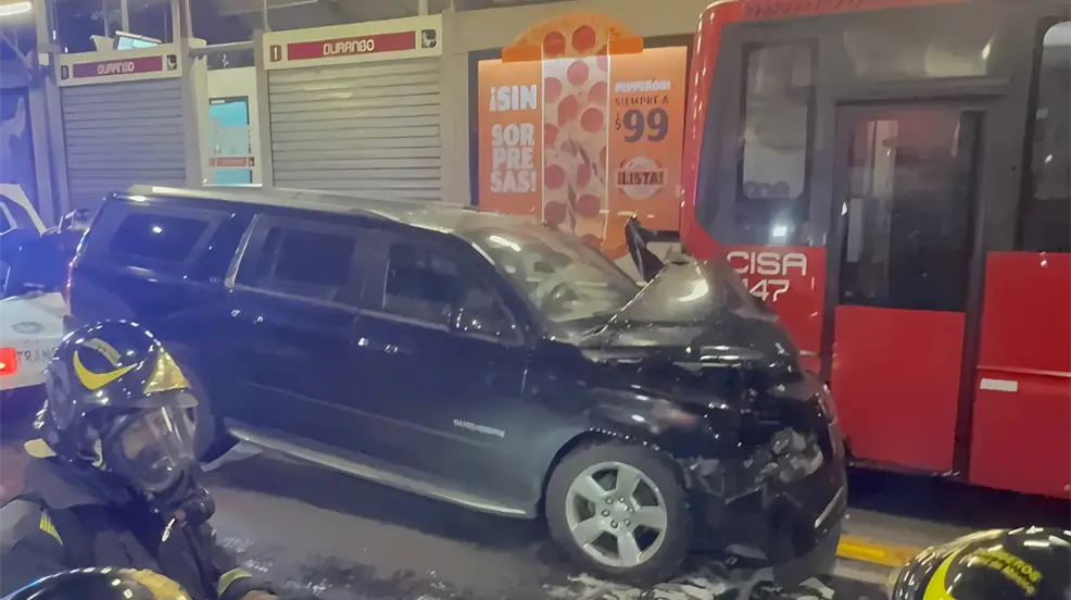 Accidente en Metrobús de la Línea 1, se estampa una camioneta blindada