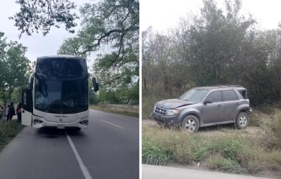 GÜEMEZ, Tamaulipas.- Un accidente entre un autobús y una camioneta tipo pick-up ocurrió en el kilómetro 37 de la Carretera Federal 85 Victoria-Monterrey, específicamente entre las comunidades de Plan de Ayala y El Carmen en el municipio de Güémez.