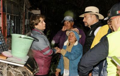 La gobernadora Delfina Gómez Álvarez supervisa las afectaciones por lluvias en Chalco.