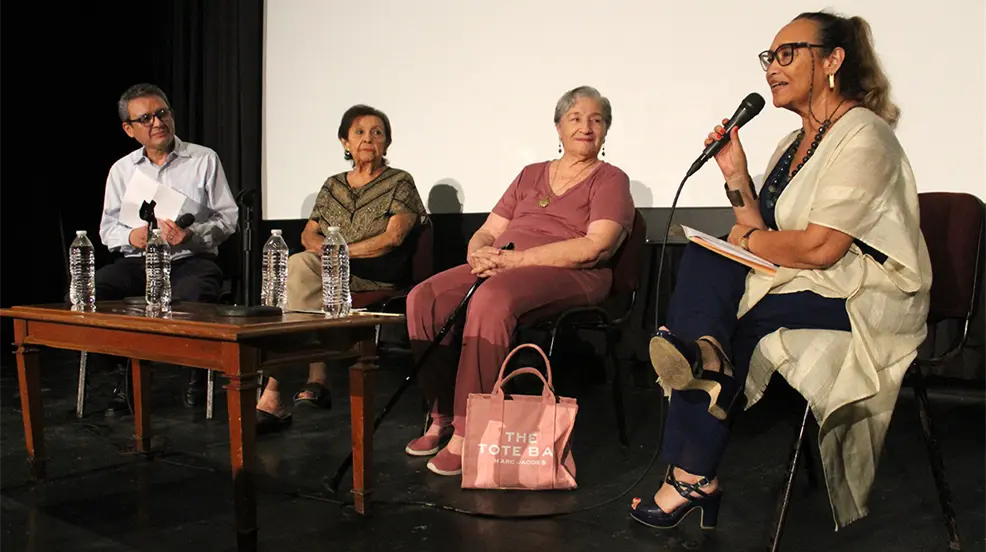 La plática llegó a las anécdotas, entre ellas hablar sin darse cuenta de que el micrófono estaba encendido, algunas tragedias, bromas entre actores. Y así subrayaron cómo ha sido dedicarse al teatro, siendo mujeres pioneras en el ámbito, con responsabilidades familiares y laborales.