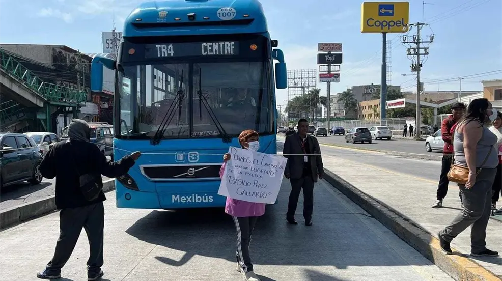ECATEPEC, Estado de México.- Padres de familia de la escuela primaria Basilio Pérez Gallardo, ubicada en la colonia Sagitario 8 de Ecatepec, realizaron una protesta bloqueando los carriles confinados del Mexibús en ambos sentidos, a la altura de la estación Alfredo Torrez. La manifestación fue desencadenada por denuncias en contra del director de la escuela, Eugenio 'N', a quien los padres acusan de abusos hacia los niños y de mala gestión administrativa en la institución.