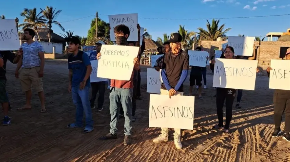 Según la versión de los familiares, uno de los jóvenes fue interceptado por elementos de la Marina, cuando este regresaba de visitar a su novia, en la comunidad de Palos Blancos, su cuerpo, fue encontrado con huellas de golpes y disparos a espaldas de un expendio de gasolina, junto a otro joven.