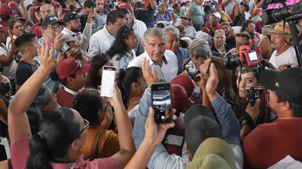 Denuncia Adán Augusto López reparto de despensas para evitar asistencia a asamblea informativa en Tamaulipas.