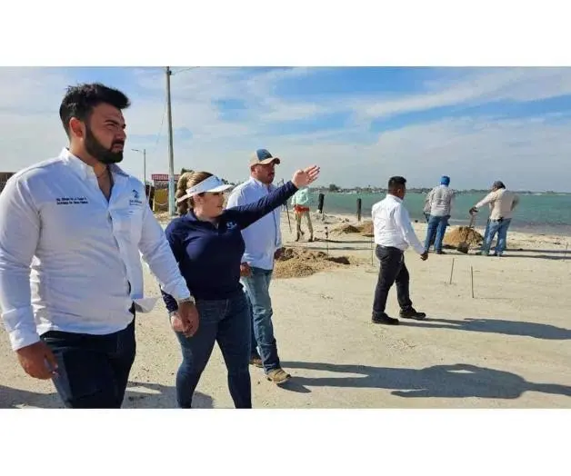 SAN FERNANDO, Tamaulipas.- La alcaldesa Maybella Ramirez Saldivar supervisó los trabajos de rehabilitación general y construcción de nuevas palapas en la Playita La Carbonera, en la Laguna Madre.