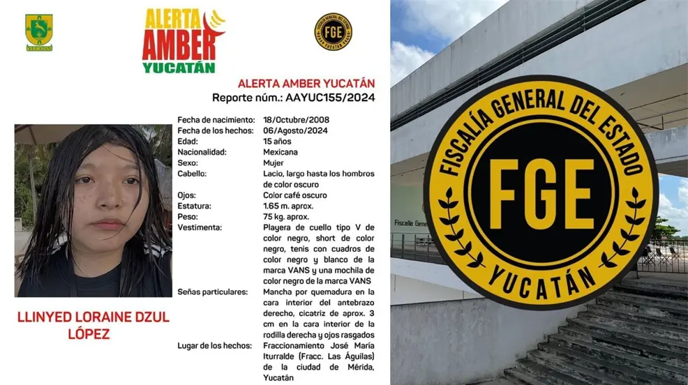 MÉRIDA, Yucatán.- El pasado 6 de agosto, la adolescente Llinyed Loraine Dzul López, de 15 años, desapareció en el fraccionamiento José María Iturralde, también conocido como Las Águilas, en Mérida, Yucatán. Desde entonces, su familia no ha tenido noticias sobre su paradero, lo que ha generado gran preocupación y la activación de una Alerta Amber por parte de la Fiscalía General del Estado.