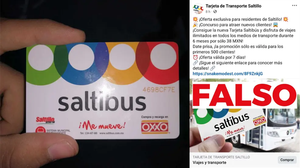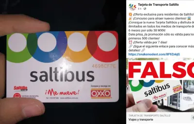 En una publicación de la página 'Tarjeta de Transporte Saltillo' en Facebook, se promociona una tarjeta Saltibus que promete viajes ilimitados en todos los medios de transporte durante seis meses por tan solo 38 pesos. Esta página ha sido confirmada como falsa por las autoridades municipales, que instan a los ciudadanos a no dejarse engañar.