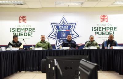 TORREÓN, Coahuila.- En la séptima reunión semanal de seguridad, presidida por el comisario César Antonio Perales Esparza, director de la Policía de Torreón, en representación del alcalde Román Alberto Cepeda González, se analizaron las acciones llevadas a cabo por las dependencias y corporaciones municipales en vista de los próximos eventos turísticos en la ciudad.