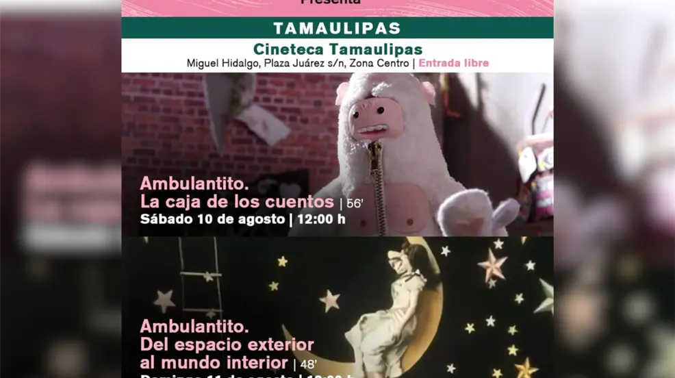 Todas estas producciones son clasificación A y B, además los títulos "Ambulantito" están diseñados para público infantil, la entrada es gratuita y puedes consultar los horarios en la cartelera publicada en la página de Facebook de la Cineteca Tamaulipas.