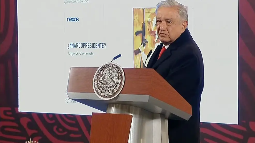 El presidente AMLO, en medio de la conferencia, le pidió a su equipo que proyectara el texto que Jorge Castañeda publicó en su cuenta de X (antes Twitter) que reza: “¿Le queda el mote de #narcopresidente a López Obrador? Por ahora, es imposible afirmarlo, pero tampoco resulta factible rechazarlo”, el cual publicó el pasado 9 de febrero y dirige a un artículo suyo en la revista Nexos.