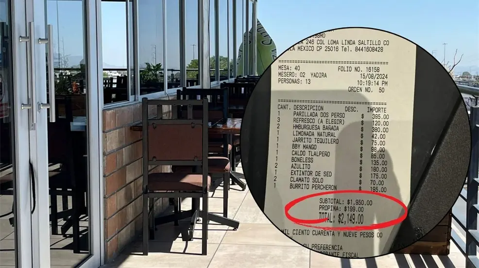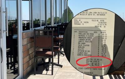 A través de redes sociales se viralizó un caso de presunta propina obligatoria en un restaurante al sur de Saltillo