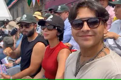 CIUDAD DE MÉXICO.- El desfile cívico militar que se lleva a cabo en el Zócalo capitalino es una tradición anual para conmemorar la Independencia de México. Donde miles de personas se dan cita para presenciar dicho evento, entre autoridades del gobierno e invitados especiales. En esta ocasión, se pudo captar a Ángela Aguilar y Christian Nodal, acompañados por el hermano de la cantante, Leonardo Aguilar, sentados en el templete de honor, entré el público que miraba el desfile.