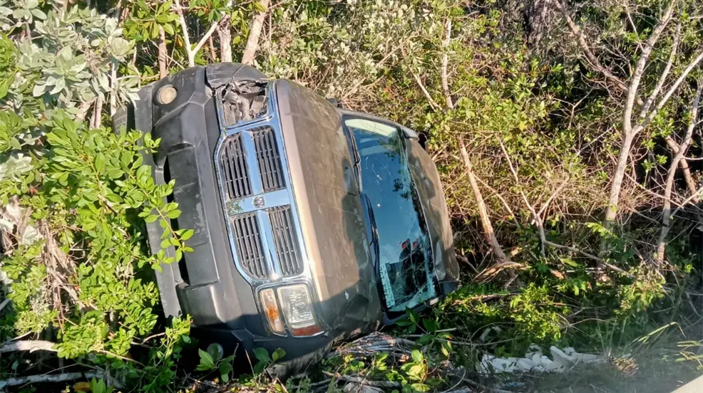 Este sábado, poco antes de las tres de la tarde, se reportó la volcadura de un vehículo en el tramo Mérida-Progreso, a la altura del kilómetro 32 en el desvío a Chelem. El automóvil Dogde Nitro color gris, quedó fuera de la carretera y la valla de contención se encontraba derribada.
