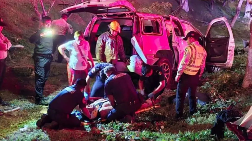 El impacto dejó a los dos hombres con lesiones de consideración, mientras que las dos mujeres que los acompañaban resultaron con heridas leves. Policías estatales que transitaban por la zona fueron los primeros en llegar al lugar del accidente y alertaron a la central de mando. Poco después, arribaron dos ambulancias y unidades de bomberos, quienes trabajaron en las labores de rescate y atención a los heridos.