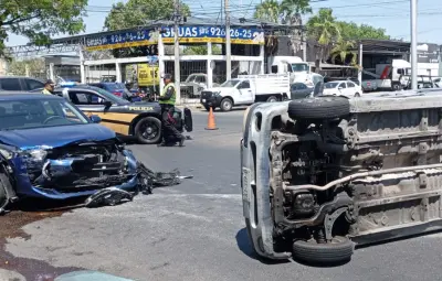 MÉRIDA, Yucatán.- En un reciente accidente vehicular en la colonia Felipe Carrillo Puerto Norte de Mérida, cerca del conocido centro comercial Plaza Fiesta, un choque seguido de una volcadura resultó en varios miles de pesos en daños materiales, aunque afortunadamente sin heridos graves.