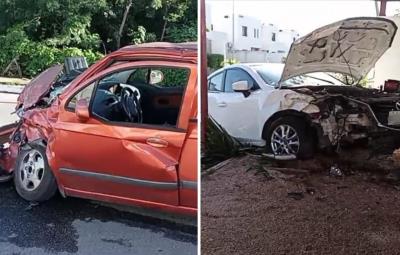 MÉRIDA, Yucatán.- Un aparatoso accidente ocurrió en el Fraccionamiento Los Héroes, al oriente de Mérida, cuando un conductor de un Matiz no respetó la señal de alto en la intersección de las calles 130 y 105, colisionando con un Mazda alrededor de las 5:00 p.m. del día de ayer. El fuerte impacto hizo que la conductora del Mazda perdiera el control y se estrellara contra un predio cercano.