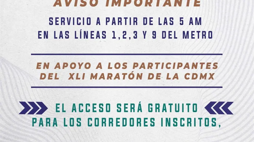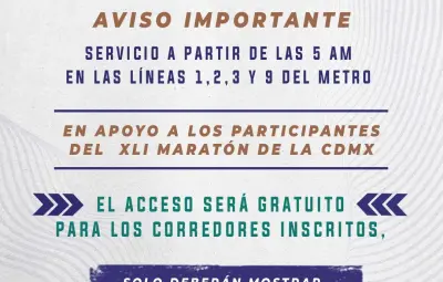 Como cada año, el gobierno de la capital e Indeporte hacen un plan de movilidad pensando en los corredores para que puedan llegar a tiempo a la salida, que será desde Ciudad Universitaria, como cada año, habrá servicio gratuito del Metro para los corredores que presenten su número, transporte que estará abriendo a las 05:00 horas.