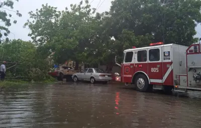 La situación se complicó debido a la inundación de la calle, producto de la gran cantidad de agua caída durante las lluvias de la tarde, lo que dificultó las labores de los bomberos. A pesar de las adversidades, lograron retirar el árbol y restablecer el tránsito en la zona.