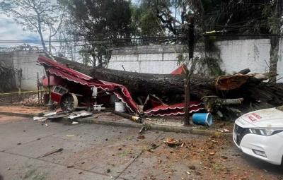 TENANCINGO, Estado de México.- Un árbol de considerable tamaño colapsó sobre un puesto de 'gorditas' en la concurrida calle de Madero, esquina con Matamoros, en Tenancingo. El incidente ocurrió cuando varios comensales disfrutaban de sus alimentos.