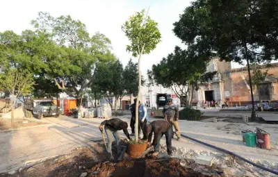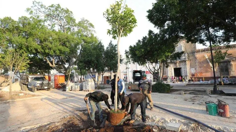 MÉRIDA, Yucatán.-La plantación de árboles en la Plaza Grande de la capital ha comenzado como parte de los trabajos de remodelación que se están llevando a cabo en este importante punto de la ciudad. El objetivo es establecer 102 nuevos ejemplares, así como más áreas de vegetación, con la finalidad de duplicar la cantidad actual y ofrecer más espacios verdes para el disfrute de los yucatecos y visitantes.