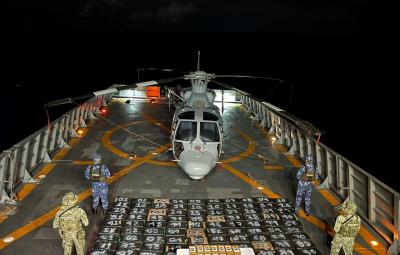 Entre las acciones más destacadas, se aseguró una embarcación tipo semisumergible con tres motores fuera de borda y 93 bultos de droga, con un peso de 2,179 kilogramos. La operación aérea para interceptar esta embarcación, diseñada para evadir detección, fue de alto riesgo e implicó técnicas avanzadas de abordaje en movimiento.