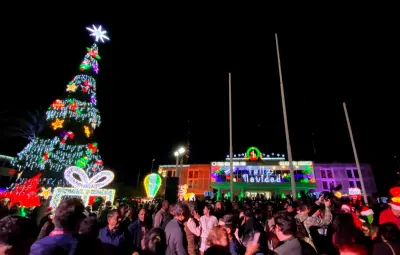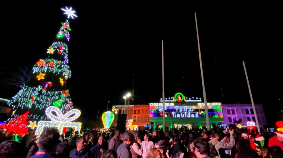 Arranca la magia navideña en BCS: Encienden luces en la Explanada del Palacio de Gobierno (FOTOS)