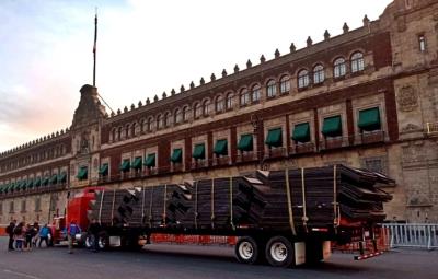 Un par de tráilers se estacionaron frente a Palacio Nacional, para comenzar a colocar las vallas metálicas en vísperas de marcha de mujeres.