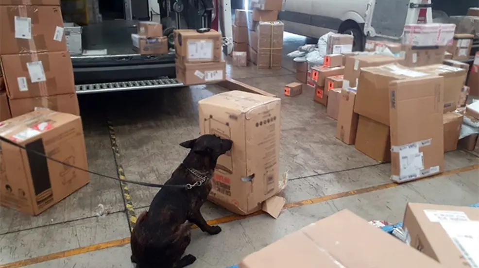 Durante la operación, con previa autorización, el personal de la Guardia Nacional realizó rastreos preventivos y tuvo contacto visual con una caja de cartón emplayada proveniente del estado de Chihuahua. El ejemplar canino, entrenado para detectar sustancias ilícitas, mostró una indicación positiva en dicha caja, lo que hizo sospechar a las autoridades.