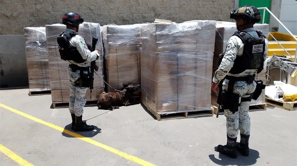 El operativo se realizó con la participación de un binomio canino que alertó sobre la posible presencia de sustancias ilícitas en cajas etiquetadas como piezas de cantera. Tras una inspección minuciosa, se descubrió que las losas de cantera escondían 600 paquetes envueltos en cinta canela, con un peso total aproximado de 1,200 kilogramos de marihuana. Además, se encontraron 39 bolsas de plástico conteniendo una sustancia granulosa y cristalina, identificada preliminarmente como metanfetamina.