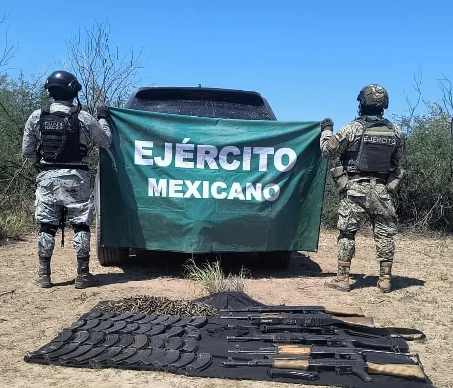 HERMOSILLO, Sonora.- Integrantes de la Guardia Nacional (GN), en coordinación con el Ejército Mexicano, llevaron a cabo un exitoso operativo en Pitiquito, Sonora, donde aseguraron un arsenal que incluía fusiles de asalto, cargadores y cartuchos útiles, además de equipo táctico.