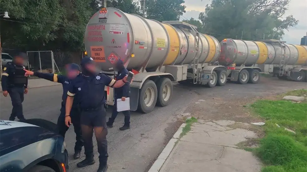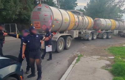 TEXCOCO, Estado de México.– En una acción del Operativo Blindaje Carretero, la Secretaría de Seguridad del Estado de México (SSEM) y personal de la Secretaría de la Defensa Nacional (SEDENA) aseguraron un tractocamión enganchado a dos plataformas tipo pipa con material de dudosa procedencia. El incidente ocurrió cuando los agentes intentaron detener al vehículo en la carretera Lechería-Texcoco.