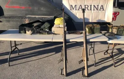 Tras efectuar una revisión en el lugar, se aseguraron: un vehículo con blindaje artesanal, tres armas largas, cartuchos de diversos calibres, equipo táctico, así como paquetes y bolsitas que contenían hierba con las características de la marihuana. Todo el material confiscado fue puesto a disposición de la autoridad competente para la integración de la carpeta de investigación correspondiente.