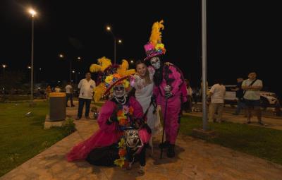 En el Pixan Peek, durante la caminata, los asistentes mostraron su creatividad y entusiasmo con originales disfraces tanto del tutor como de la mascota.
