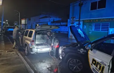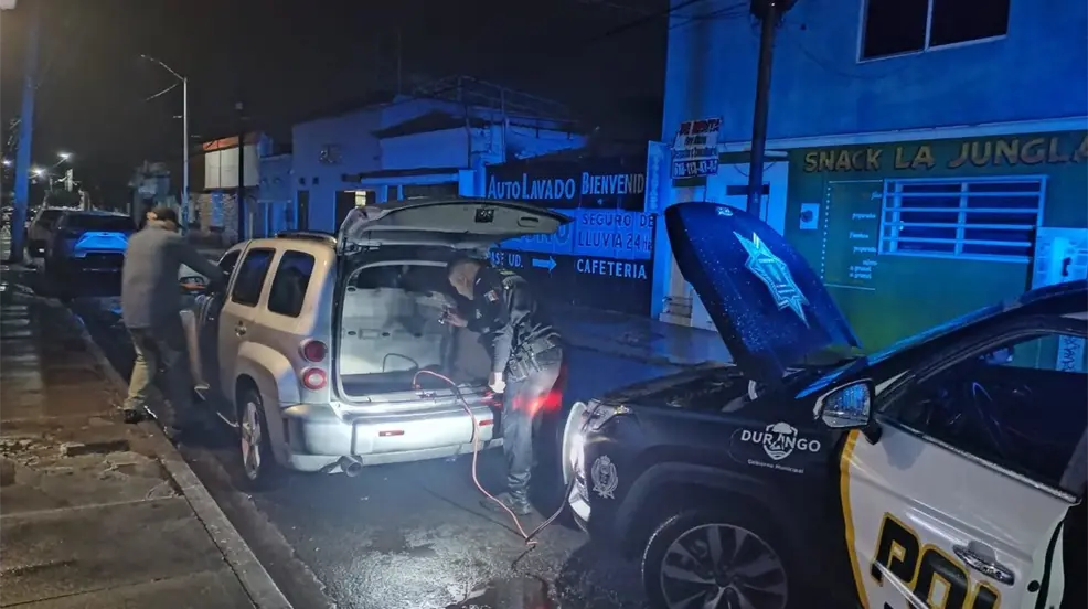 DURANGO, Durango.- Elementos de la Policía Municipal, ayudan a los ciudadanos que quedaron varados por la fuerte lluvia registrada en la capital del estado.