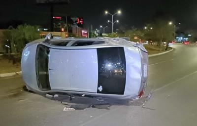 Los hechos ocurrieron la noche del domingo en el cruce con la calle 26 de la colonia Maya y según un testigo, la guiadora del auto maniobró para cambiar de carril, pero un motociclista hizo lo mismo justo en ese momento lo que obligó a la mujer a volantear para no pegarle al guiador de la ligera unidad, lo que hizo que se volcara sobre la avenida.