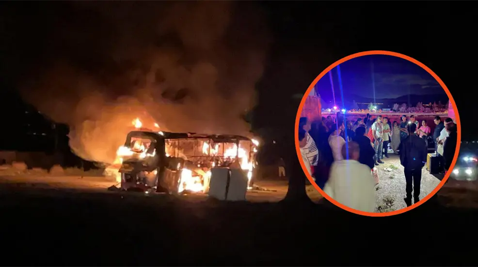 Autobús peregrino se incendia en límites de Coahuila y Nuevo León