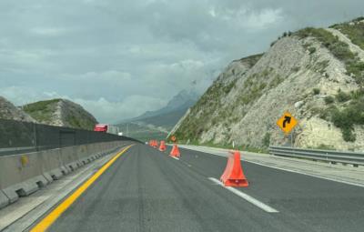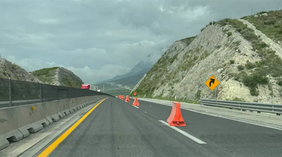 El cierre de carril derecho de baja velocidad en la autopista Saltillo-Monterrey es con dirección a Monterrey, a la altura del kilómetro 66