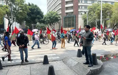 Al contingente se sumaron 5 jóvenes encapuchadas, quienes marchan con el rostro cubierto, por lo que policías capitalinos mantienen un monitoreo cercano y discreto para evitar cualquier desmán a lo largo del recorrido.