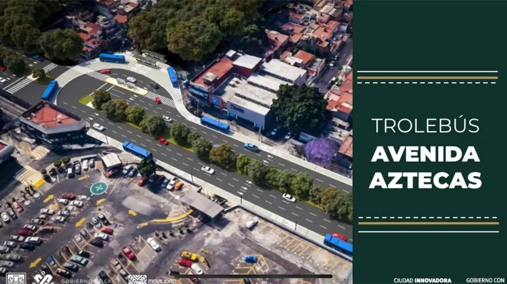 El Trolebús Aztecas irá de Taxqueña a Perisur a lo largo de siete kilómetros y 15 estaciones. Esta obra es parte de la planeación de la Secretaría de Movilidad, que publicó el programa de sustitución de 97 microbuses por trolebuses por 28 trolebuses. Los concesionarios recibirán un apoyo económico de 450 mil pesos como bono de chatarrización.