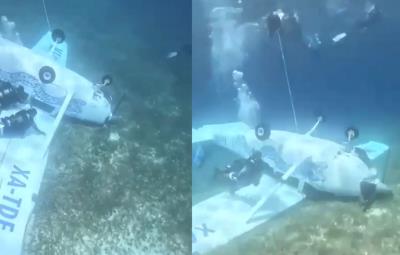 Avioneta cae al mar en Cozumel