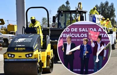 La gobernadora Delfina Gómez entregó maquinaria para bacheo y reencarpetado con histórica inversión de 67 millones de pesos.