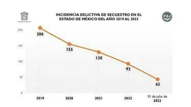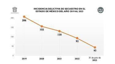La FGJEM informó que desde 2020 la incidencia de secuestros bajó considerablemente, ya que en 2019 hubo 206 casos; en 2020, 155; 2021 se registraron 130; mientras que en 2022 fueron 92.