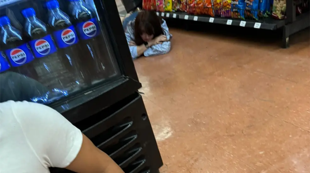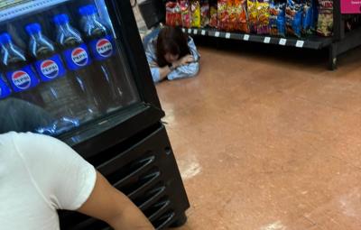 'Uno viene por despensa, no por balazos', escribió el usuario @omarcithop_omar en X (antes Twitter), junto a una imagen de una clienta en el piso del pasillo de las papas, esperando a que fuera seguro transitar nuevamente por la tienda.