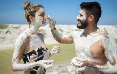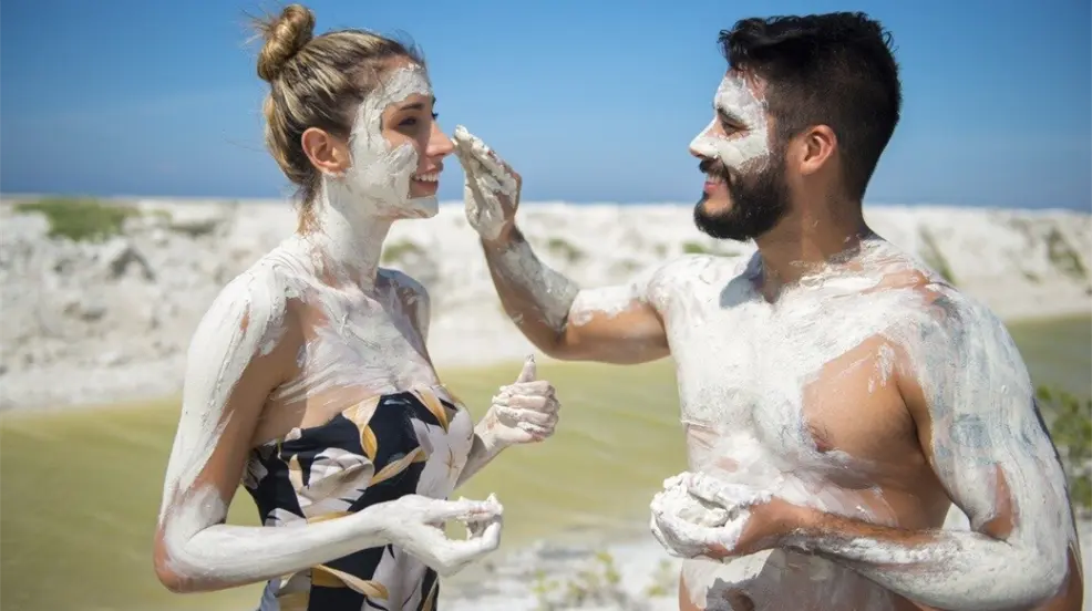 Este baño consiste en cubrirse la piel con un barro o lodo blanco para exfoliar la piel. Extraída de la misma arena de la playa, es rica en azufre, sales y algas; puede aplicarse en todo el cuerpo, desde la cara, a modo de mascarilla, hasta los brazos, las piernas, el abdomen y la espalda.
