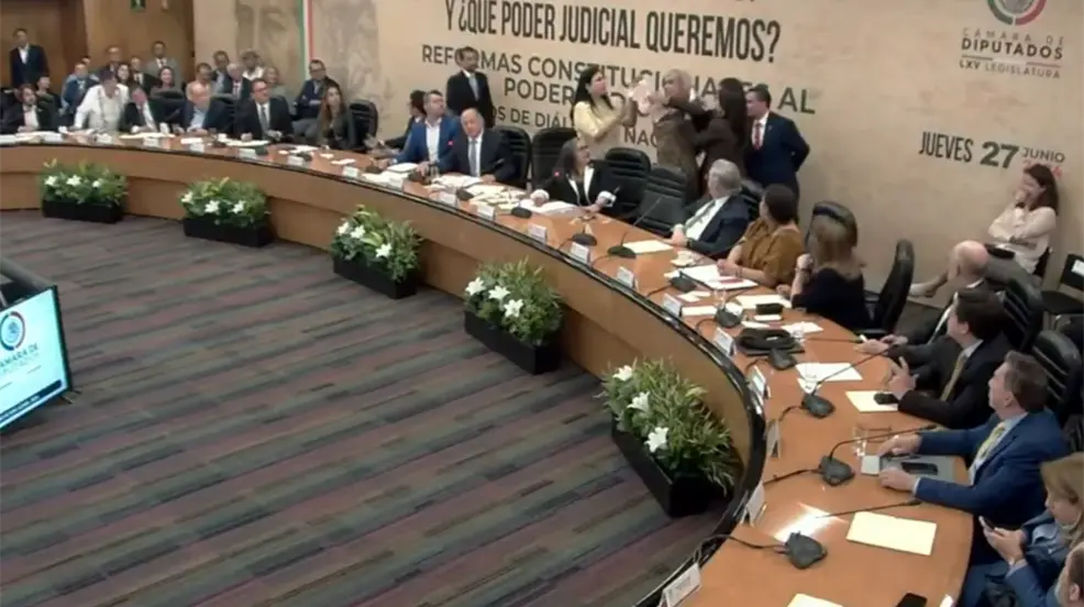 CIUDAD DE MÉXICO. - Durante el Foro de los “Diálogos Nacionales sobre la Reforma al Poder Judicial”, la tensión se elevó cuando la diputada María Clemente se acercó a la ministra presidenta de la Suprema Corte de Justicia de la Nación (SCJN), Norma Piña, y le reclamó la liberación de agresores de transexuales por parte del Poder Judicial.