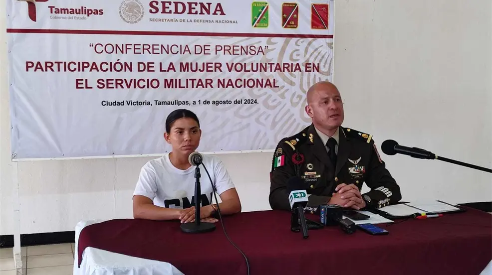 CIUDAD VICTORIA, Tamaulipas.- Durante una conferencia de prensa, el C. General Brigadier de Estado Mayor, Carlos Elizondo Serrano, jefe del Estado Mayor de la 48/a Zona Militar, hizo un llamado a las mujeres para incrementar su participación en el Servicio Militar Nacional (S.M.N.).